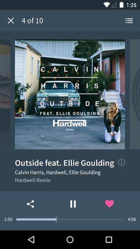 虽然 Beatport 的歌曲详情页可以用中规中矩来形容,但仍不乏设计团队的巧思 —— 在左右划动切换歌曲时,每一首歌的背景颜色都是专辑封面提取出来的颜色加深一个色号、甚至顶部通知栏也做了变色处理。