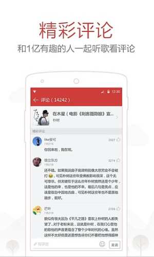 - 强大的【乐评】氛围,同一首歌,通过其他人的评论,体会当中故事、体会同样的感受,在评论中找到共鸣。