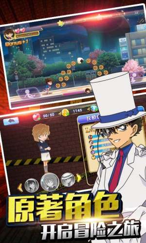 1.纯3D的角色和多个跑酷场景,逼真还原柯南的动漫世界。