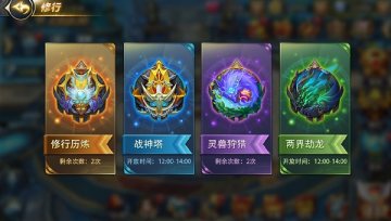 修行分为四种玩法: 修行历炼、战神塔、灵兽狩猎与两界劫龙。