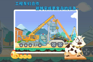 用挖掘机挖土,给土方车装石块,用吊车把小树种好,让装载机压平地面……多种互动,让宝宝认识工程车的功能。各种工程车还能合作完成更复杂的任务,培养宝宝的逻辑思维能力和合作意识。