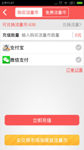 支持移动电信联通三网流量包兑换及购买,极速到账!