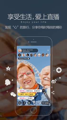 同时,你也可以像主播们一样进行直播,用自己独特的亮点 和 有趣的新鲜事吸引更多的人聚集在这里;还可以分享到朋友圈,微博,微信邀请好友观看。尽情挥洒你的热情,绽放你的光