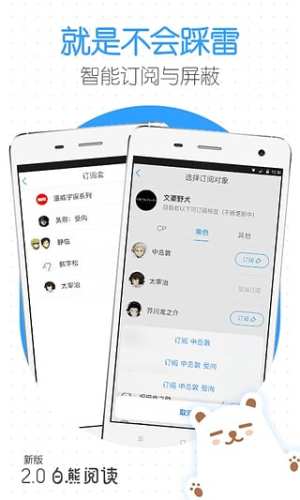 白熊阅读是一款二次元同人小说阅读APP。不限原作次元和国界,无论取向和CP,你想看的都在这里,冷不冷都和你在一起。