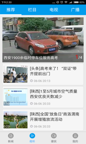 智能推荐,私人订阅,多媒体视听新闻,覆盖陕西所有地市资讯,为您提供美食、旅游、天气等贴心的周边服务。