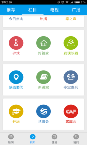 第1新闻、都市快报、好管家、秦之声…海量陕台节目,想看哪个看哪个。