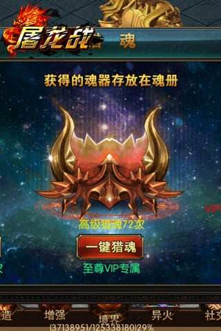 《屠龙战》是一款大型即时战斗ARPG手机游戏,2.5D还原经典战斗视觉体验,结合战、法、道三大职业组合,打造全新的热血战斗手游。从嗜血PK、行会争霸到万人跨服战,重重挑战、技能秒杀、刀刀爆装、还原最真实的PK快感!强PK!爆装备!可交易!