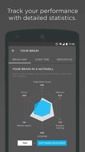 -深入洞察与包括个人和比较脑图,数据可视化和每类的图形(内存,重点,语言,思维的敏捷和解决问题)的性能跟踪。