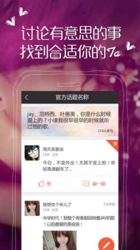 寻恋,一款专为同城附近单身男女打造的情感交流平台,令孤单的你,最快的迎来一次次浪漫的约会。