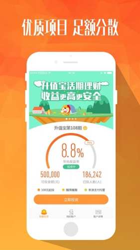 升值宝是深圳市前海升值宝金融信息服务有限公司旗下的移动互联网金融理财产品,注册资本1亿元,为广大投资人提供8%+收益率的活期理财服务。公司高层由国内知名金融机构之资深人士组成,具有丰富的金融行业资历与风控能力,核心开发及运营团队均来自金融、互联网、IT行业,在产品研发、运营推广层面具备强大的优势。