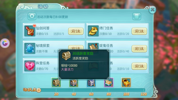 完成日常任务,积攒活跃度,获取足够的活跃度后可打开相应宝箱,获取活力。