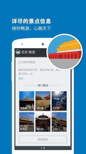 当您处在景区外时,故宫导游是一本妙趣横生的百科全书,图文并茂地向您展示着景区深邃的文化内涵和丰富的历史积淀,让您体验到景区身临其境的愉悦感。