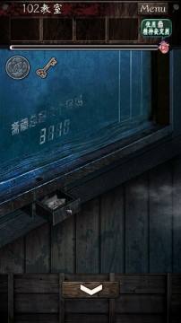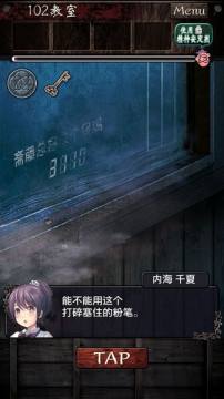 点击教室的黑板位置,可以看到黑板上有秘之涂鸦,但是主角表示看不清数字,所以先不管它,用圆珠笔打碎下面抽屉里面卡住的粉笔,打开抽屉,获得钥匙