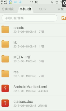 然后点开,找到你的安装包,已经把安装包删了的孩纸(就是我)重新下载一遍游戏就有咯(不用安装只需下载),找到安装包以后呢长按,然后选择“解压到”解压软件,我是直接解压到这里的,如果需要可以选择别的路径,(这就是为什么需要这个软件的原因哦,如果没有这个软件是无法解压游戏的呢)。