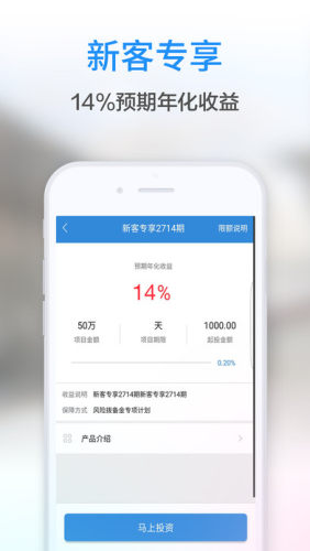 1、新客专享理财标的,短期高息起点低,1月期,100起投,预期年化收益率达14%;