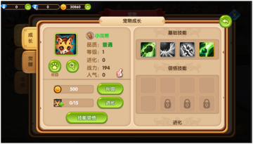 点击宠物详细信息可以对宠物进行升级、进化操作喔;