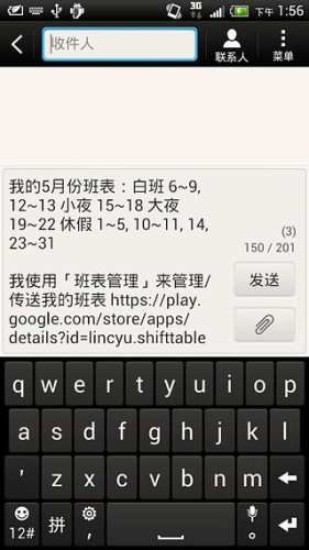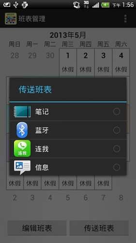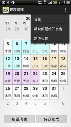 两班制「白班、晚班」以及客制化的「自订班表」)并可传送班表给亲朋好友,