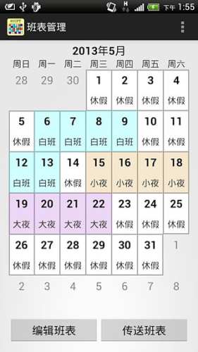让您能够轻松管理您的班表(当前提供三班制:「白班、小夜、大夜、休假」以及