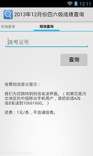 输入准考证号自动跳转到短信发送界面,自动填入查分号码,简单无压力