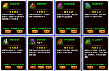 技能心法一共有8种类型,4种品质,可以自由选择搭配,让技能更加出彩。