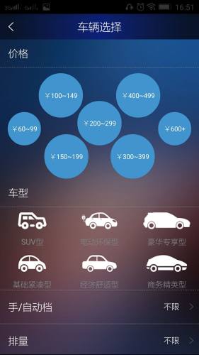 369租车app是一款最新研发的租车软件。有了此款软件,再也不用担心不好租车,或者车子租贵了,等等。海量车型随你选,价格适中,简单实用。是你生活中非常可靠的帮手,需要的朋友快来下载吧。