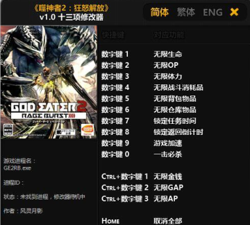 噬神者2狂怒解放3dm修改器是一款基于正式版游戏制作多功能PC修改器,支持无限生命、无限体力、游戏加速等,让你体验更加轻松的游戏,需要这款修改器的朋友赶快来下载吧!