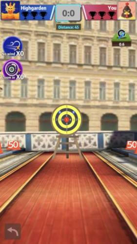 2、玩家只需要瞄准靶心,就可以投掷各种各样的武器,特别的解压。