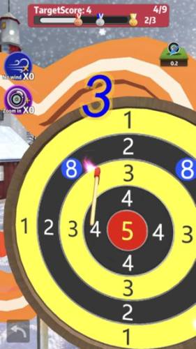 2、玩家需要拿着你的斧子朝准靶心发起投掷,获得的分数较高,对应的奖励也会越多。