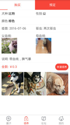 领狗狗app包含大量宠物狗狗的信息,都是经过精心筛选,安全有保障,这里有正规化得领养程序,还有论坛、圈子谈论交流,一定能让你领养到自己满意的宠物狗。
