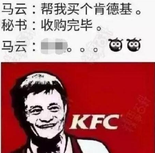 马云买下肯德基表情包是一款网友通过马云收购肯德基这一热点事件制作的搞笑表情包,充分表明了马云成功复仇肯德基!当年应聘被刷,如今成为中国肯德基的大BOSS,今年最励志的逆袭故事!
