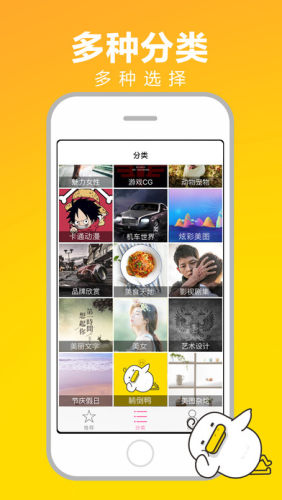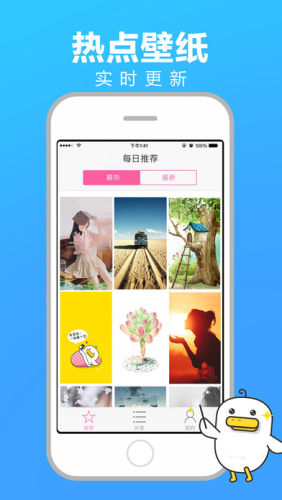 虽然大家的苹果手机也都有自己的官方壁纸,可惜时间长了都会比较难看,这样不如选择躺倒鸭手机壁纸ios版官方版,这款里面包含着上千张当下最热门的手机版,让你们能够享受天天自动换壁纸的乐趣。