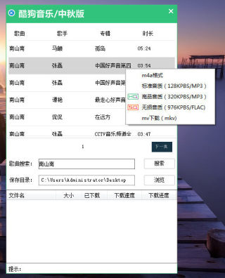 酷狗音乐无损付费歌曲下载器中秋节版,这款不但可以帮着大家快速搜索酷狗里面的任何歌曲,而且还支持任意下载无损品质、版权收费歌曲,帮助爱听的你解决歌曲下载问题。更重要是这款是独立下载器,可以让你不需要打开酷狗,就能直接下载喜欢歌曲。