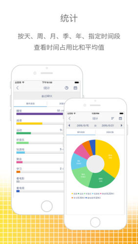 强大的统计,以饼图和柱图等多种方式分析时间占用比