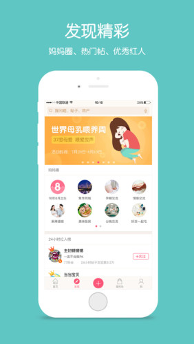 最火爆的孕育社区,这里有全国各地的辣妈聊天。有同龄的、同城市的、相同兴趣爱好的(科学育儿圈、母乳喂养圈、情感蜜语圈、麻辣婆媳圈、减肥瘦身圈等...)