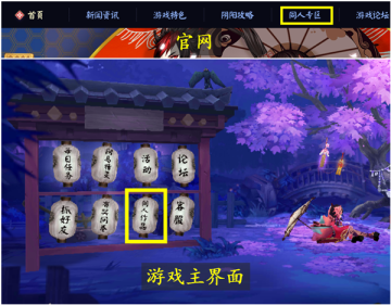目前玩家可以通过两种渠道进入《阴阳师》同人专区,既可以从导航栏进入,也可以直接在游戏内庭院左边点击标有“同人作品”的灯笼进入图库浏览图片,这样玩家在游戏中耗尽体力值等待恢复的时候,就可以前去欣赏这些作品消磨时间。