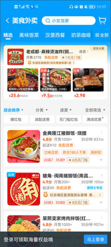 网罗周边各类外卖,中餐、西餐、快餐、简餐、火锅、烧烤、烘焙、汉堡、早餐、下午茶、夜宵、甜点、甜品、水果、鲜花、果蔬、生鲜、蛋糕、寿司、咖啡、超市购物……各类特价优惠套餐、满减折扣优惠、立减优惠套餐,便捷生活,一手掌握,尽在饿了么!