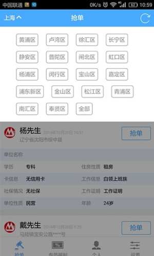 【抢订单】海量办卡订单任你选,透露部分非关键信息助你挑单。完成抢单后,可获取完整用户信息:学历、工作证明、单位性质、社保情况、年龄……