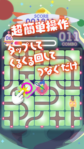 别看该作画风好像很可爱,实际上剧情设定还是比较科幻的:玩家在游戏中的身份是一位外星人猎手,要探索各种未知的行星并捕捉收集在上面生活的外星生物。具体要做的是就是点击画面让那些呈现直线、十字或弯曲形态的管状通道贴图改变方向,让它们成为能够连通到位于画面中央的蓝发小精灵身边的道路。
