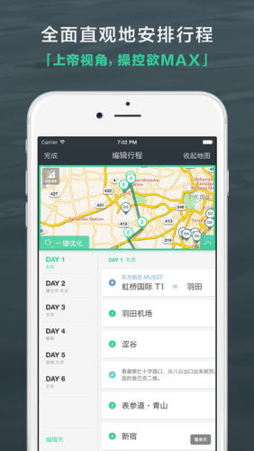 3. 对照地图调整行程,一键优化旅行路线,省时省力