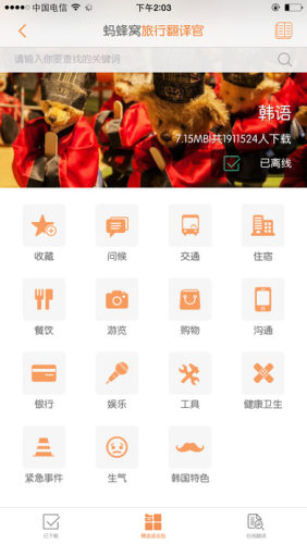 旅行翻译官iOS版,蚂蜂窝推出的一款外语翻译服务手机软件,覆盖17种旅游热门语种,13种国内方言,30多种真人发音语言包免费下载,没有wifi也不怕,随时随地都能使用。旅行翻译官app,外出旅游的翻译小助手,陪你轻松走遍世界每一个角落!