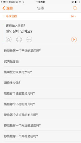 旅行翻译官让您的Android设备开口说话,软件包含40多个语种,每个语种根据不同的场景进行分类,如交通、问候、银行、购物、娱乐、餐饮等。