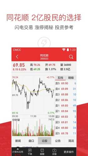 同花顺(300033)手机炒股股票软件是市场上实时行情、极速交易、数据全面、支持券商众多、领先支持沪港通,支持多家券商融资融券,