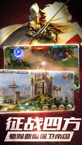 建造宏伟的城堡,参加自由开放的战斗。升级繁华城市,进阶强力英雄,打造史诗装备,探索一幅又一幅美轮美奂的山川河流,在探索中体验战争的乐趣。