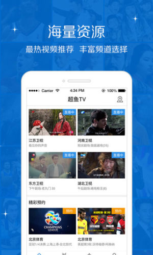 超鱼TV电脑版,一款电视直播软件。涵盖各大卫视、央视频道、地方频道、海外频道、特色频道等丰富内容。拥有海量资源,体育、娱乐、动漫、热门看点分类呈现。精彩节目可以提前预约,附近收看实时显示,2016足球赛事全程高清直播,感兴趣的朋友快来下载吧!