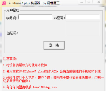 卡iPhone7在线by混世大魔王(混世魔王iPhone7在线软件)是一款帮助qq用户卡iPhone永久在线的软件。