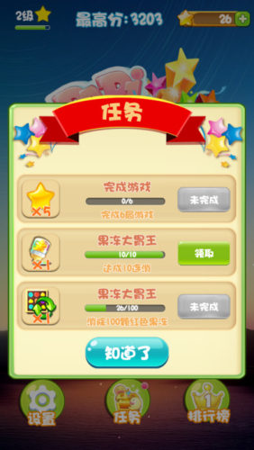 果冻星星大消除是一款比较传统的消灭星星类游戏,你需要通过高积分过关并持续闯关,并给予相应的奖励,在这过程会提升等级对游戏闯关有一定的帮助,一起来加入吧!