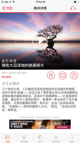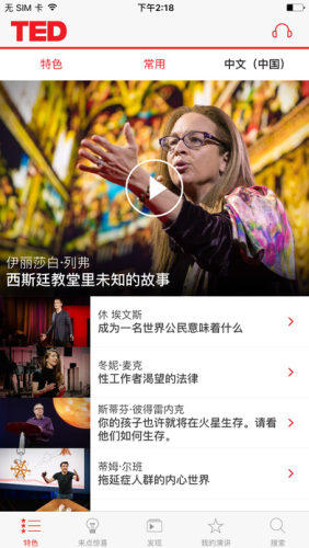 - 可浏览整个TED演讲视频库,包括100多种语言。