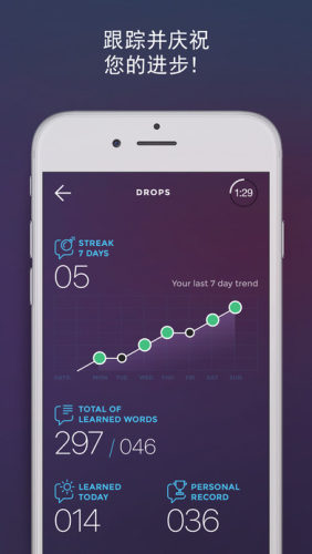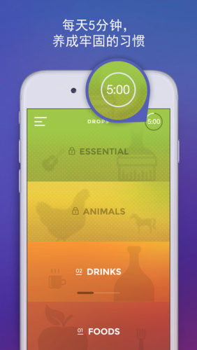 Drops希望能够将你变成沉迷于学习的人。不管你的学习工具是多么的有效,如果你不能每天使用它,一切都是徒劳的。通过Drops,词汇们将像水滴一样渗入到你的思维中,这将更适合你!