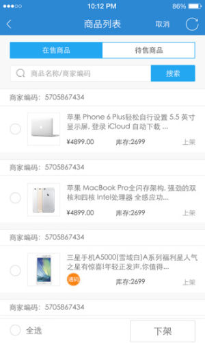 不受时间和空间的限制,随时查看商品信息,并可以对商品进行上、下架