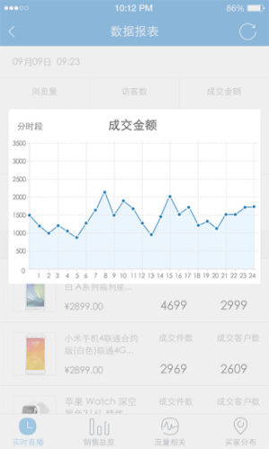实时刷新销售数据,查看数据趋势图